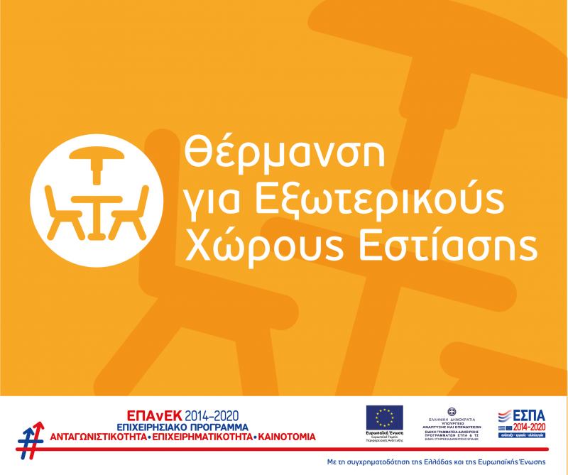 08/03/2021 Νέο ενημερωτικό video για τη δράση "Επιχορήγηση Επιχειρήσεων Εστίασης για την Προμήθεια Θερμαντικών Σωμάτων Εξωτερικού Χώρου" Πατήστε εδώ για να δείτε το video.