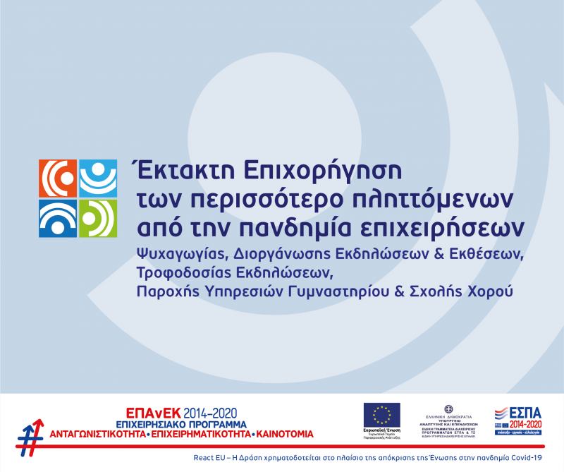 20/04/2022 Ενημερωτικό spot για τη Δράση "Έκτακτη επιχορήγηση των περισσότερο πληττόμενων από την πανδημία επιχειρήσεων" του ΕΠΑνΕΚ Δείτε εδώ