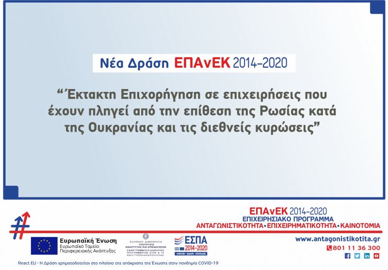 Χρονοδιάγραμμα ολοκλήρωσης έργων και προθεσμίας υποβολής αιτήματος επαλήθευσης για τη Δράση "Έκτακτη Επιχορήγηση σε επιχειρήσεις που έχουν πληγεί από την επίθεση της Ρωσίας κατά της Ουκρανίας και τις διεθνείς κυρώσεις που επιβλήθηκαν"