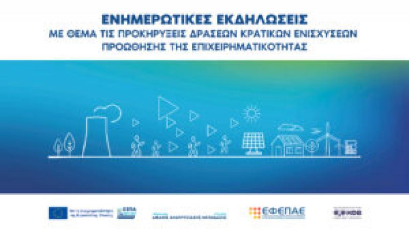 - Ίδρυση Επιχειρήσεων & Ενίσχυση Νέων Υφιστάμενων Πολύ Μικρών και Μικρών Επιχειρήσεων σε περιοχές Εδαφικών Σχεδίων Δίκαιης Μετάβασης Περιφέρειας Δυτικής Μακεδονίας & Μεγαλόπολης (De Minimis),