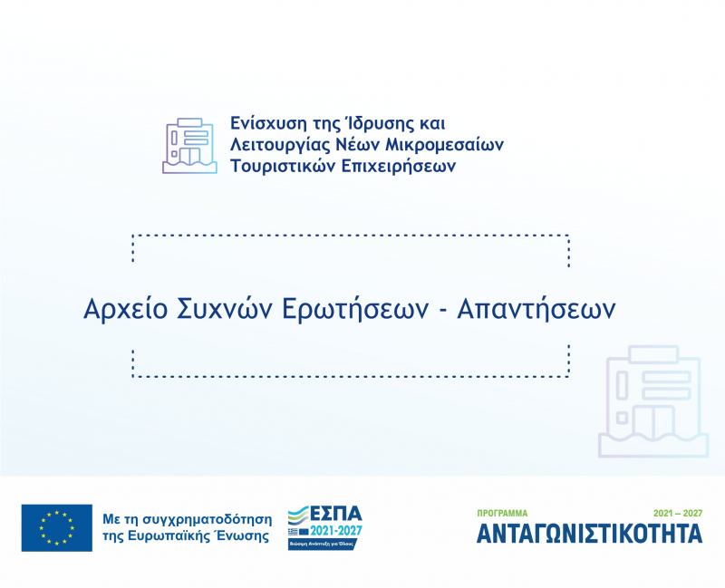 Έγκριση αρχείου Συχνών Ερωτήσεων - Απαντήσεων για τη Δράση «Ενίσχυση της Ίδρυσης και Λειτουργίας Νέων Μικρομεσαίων Τουριστικών Επιχειρήσεων»