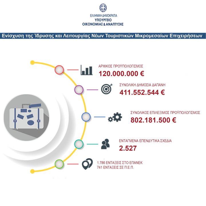 Ανακοινώθηκε ο Βαθμολογικός Πίνακας Κατάταξης και οι Απορρίψεις των Επενδυτικών Σχεδίων, με τη συνολική βαθμολογική κατάταξη των πέντε χιλιάδων εννιακοσίων εξήντα δύο (5.962) προκριθέντων σε αξιολόγηση επενδυτικών σχεδίων, στη Δράση «Ενίσχυση της Ίδρυσης και Λειτουργίας Νέων Τουριστικών Μικρομεσαίων Επιχειρήσεων» του Ε.Π. «Ανταγωνιστικότητα, Επιχειρηματικότητα και Καινοτομία (ΕΠΑνΕΚ)», ΕΣΠΑ 2014 – 2020», σύμφωνα με το ΠΑΡΑΡΤΗΜΑ Ι της απόφασης.